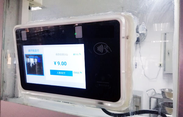 第一種刷臉就餐模式,在學(xué)校智慧食堂內(nèi)每個窗口都裝有一臺帶有人臉識別功能的智能消費機,每臺機器裝有攝像頭,可以觸屏操作,外表和普通平板電腦極為相似。學(xué)生站在“刷臉器”前不到1秒鐘,身份就會被識別出來,姓名、套餐類型等就餐信息便出現(xiàn)在屏幕上,學(xué)生確認信息無誤后,點擊“確認”即可完成支付,整個過程花費時間不超過5秒鐘。
